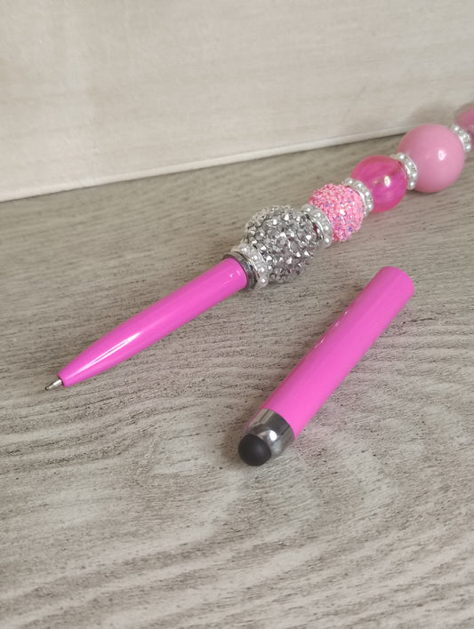 Pink Heart Pen & Stylus with Extender | Beaded 2-in-1 Statement Pen