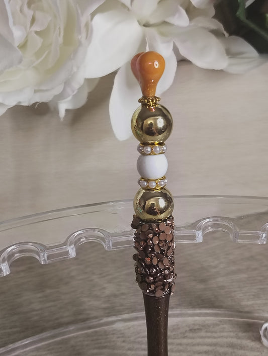 Golden Heart Beaded Pen | Bronze & Gold Glam Handmade Pen