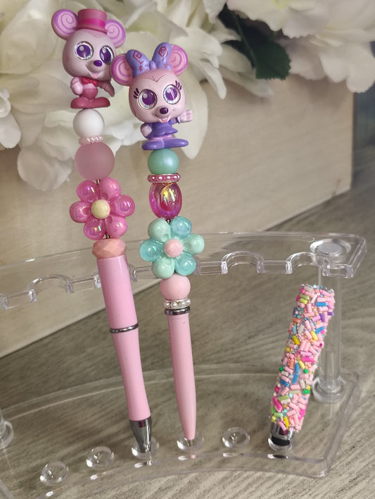 Mickey and Minnie Mouse Inspired | Pink Beaded Pen | Stylus Pen Duo | Candy Sprinkles