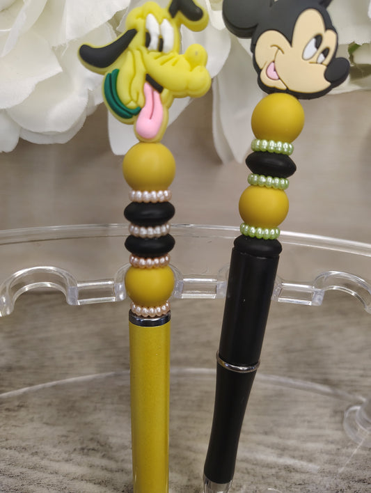 Pluto and Mickey Inspired | Classic Toon Duo Pen & Stylus Set | Yellow & Black Beaded Character Pens