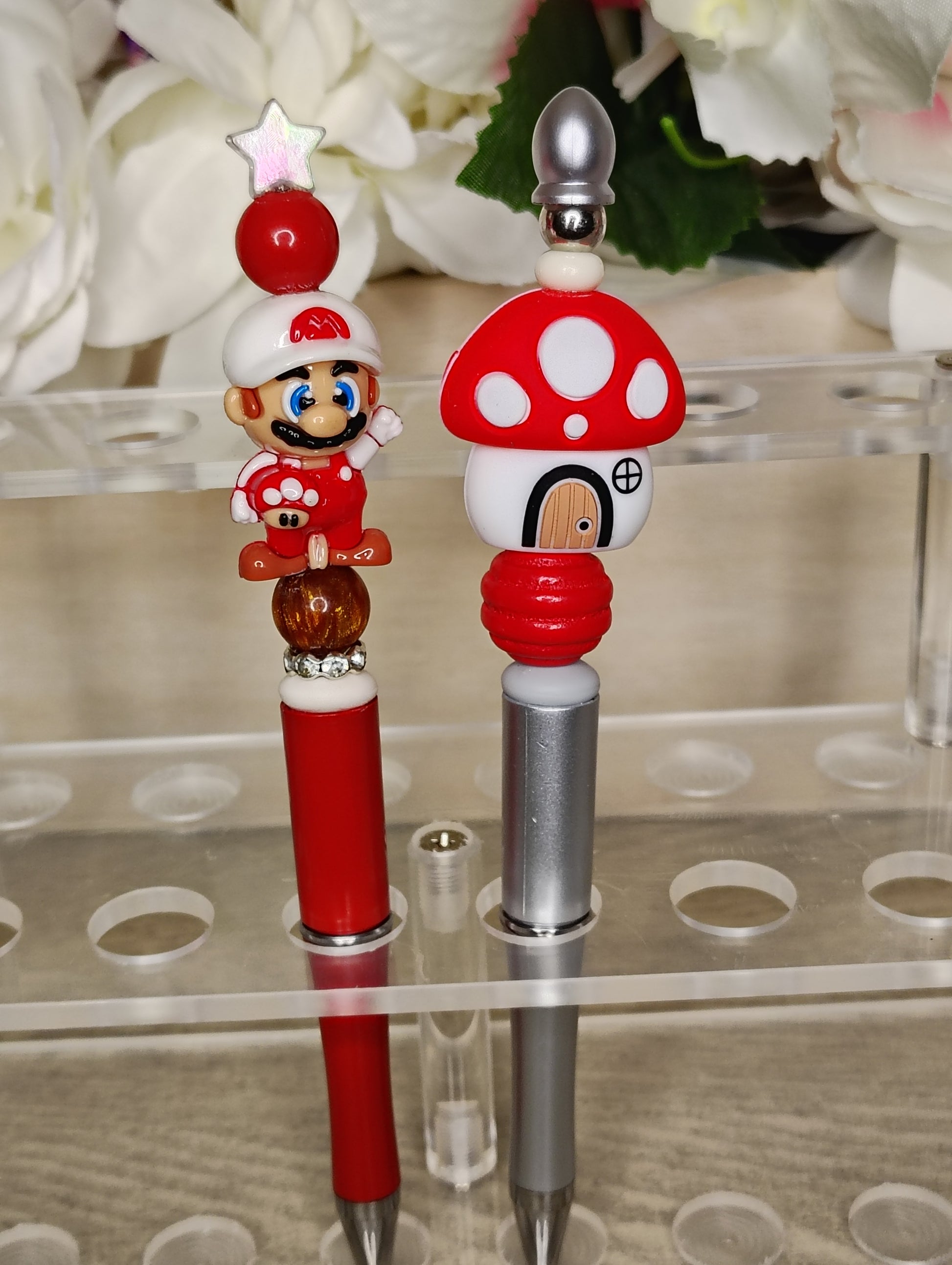 Level up your writing with this fun beaded pen duo featuring a classic plumber hero topper and a whimsical mushroom house design. Bright colors, playful details, and retro vibes make these pens perfect for gifts, gamers, kids, and everyday fun ✨🖊️🍄