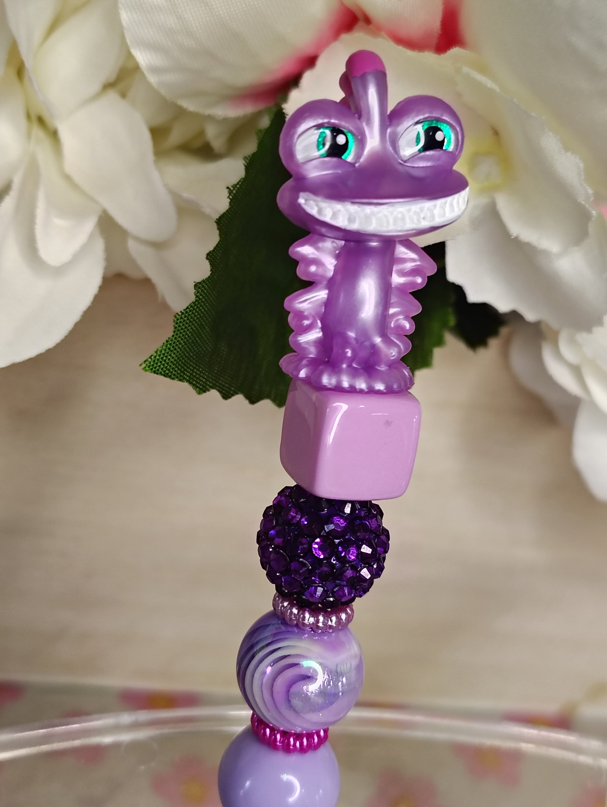 Add a little sparkle and a lot of attitude to your desk with this Purple Giggle Puff Pen. Designed with a plush purple pom, shimmering rhinestone beads, and a playful smiley creature charm, this pen is perfect for journaling, planners, or anyone who loves bold and fun stationery.