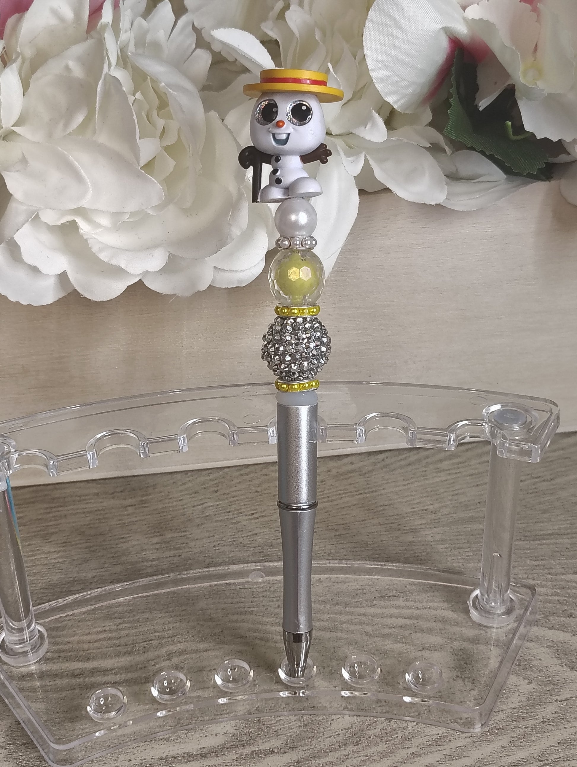 Olaf Inspired | Sparkle Pen | Silver Beaded Winter Character Pen